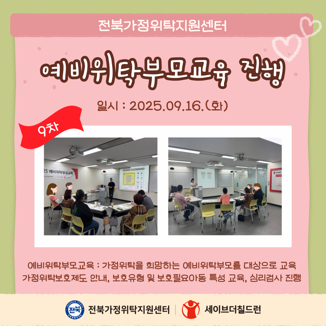 2025³â 9¿ù 16ÀÏ Á¦9Â÷ ¿¹ºñÀ§Å¹ºÎ¸ð±³À°À» ÁøÇàÇÏ¿© º¸È£ÇÊ¿ä¾Æµ¿¿¡ ´ëÇÑ º¸È£ °¡´É ¿¹ºñÀ§Å¹ºÎ¸ð¸¦ ¾ç¼ºÇÏ¿´½À´Ï´Ù.