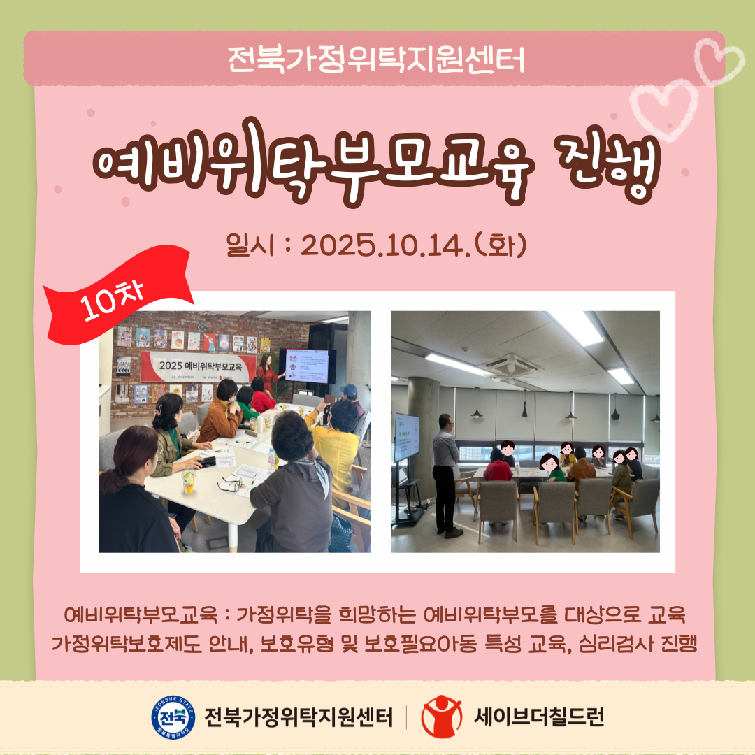 2025³â 10¿ù 14ÀÏ Á¦10Â÷ ¿¹ºñÀ§Å¹ºÎ¸ð±³À°À» ÁøÇàÇÏ¿© º¸È£ÇÊ¿ä¾Æµ¿¿¡ ´ëÇÑ º¸È£ °¡´É ¿¹ºñÀ§Å¹ºÎ¸ð¸¦ ¾ç¼ºÇÏ¿´½À´Ï´Ù.