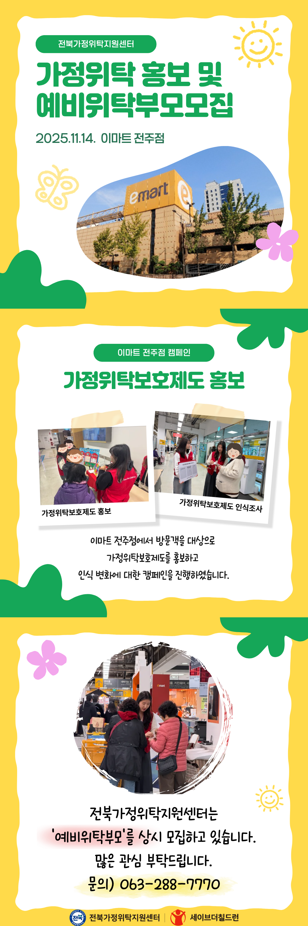 ¾È³çÇϼ¼¿ä :)ÀüºÏ°¡Á¤À§Å¹Áö¿ø¼¾ÅÍÀÔ´Ï´Ù. Áö³ 2025.11.14. À̸¶Æ® ÀüÁÖÁ¡¿¡¼ °¡Á¤À§Å¹º¸È£Á¦µµ È«º¸ ¹× ¿¹ºñÀ§Å¹ºÎ¸ð¸ðÁýÀ» À§ÇÑ Ä·ÆäÀÎÀÌ ÁøÇàµÇ¾ú½À´Ï´Ù. ÀνÄÁ¶»ç¸¦ ÅëÇØ °¡Á¤À§Å¹ ÀÌÇØµµ Á¶»ç ÁøÇà ÈÄ °¡Á¤À§Å¹º¸È£Á¦µµ¿¡ ´ëÇØ ÀÚ¼¼È÷ ¾È³»ÇÏ¿´°í, °¡Á¤À§Å¹ ºÎ¸ð·Î Ȱµ¿Çϱ⸦ Èñ¸ÁÇÏ´Â ºÐÀº ¿¹ºñÀ§Å¹ºÎ¸ð±³À° ½Åû¼¸¦ ÀÛ¼ºÇÒ ¼ö ÀÖµµ·Ï ÇÏ¿´½À´Ï´Ù. º» ±â°üÀº ¸Å¿ù ¿¹ºñÀ§Å¹ºÎ¸ð±³À°ÀÌ ÁøÇàµÇ°í ÀÖ½À´Ï´Ù. ±Ã±ÝÇÑ ºÎºÐÀÌ Àְųª, ½ÅûÀ» ¿øÇϽô ºÐ²²¼´Â ¼¾ÅÍ·Î ¹®Àǹٶø´Ï´Ù. ¹®ÀÇ) 063-288-7770